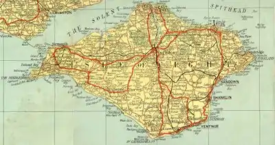 Smaller version of Geographia-IOW.jpg Extract from "Geographia" Two Miles to One Inch Map of England and Wales. Published in 19 Sheets. circa 1915 to 1930. Extract from Sheet 18. Fallen out of copyright.