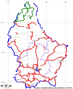 The regional cycle routes in luxembourg are defined and maintained by the communes. Therefore we don#t have a complete index of theses routes. There are a lot of regional maps available - we have to buy them, make the tour and let the GPS work! - Then we can create the relations (and the underlying ways, if necessary) in OSM and add the routes with their profiles here.
