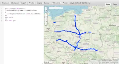 Zobacz też: lista autostrad na OSM Relation Analyzer. Narzędzie pozwala też znaleźć miejsca nieciągłości relacji.