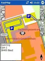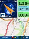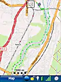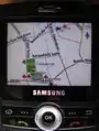 - Status (updated 2009-09-08): Occasionally gets a one-time GPS fix, map browsing works nicely, voice navigation works with WAV files (no support for AMR in phoneme apparently) when the call to volCtrl.setLevel(100) is taken away or included in an if (volctrl!=null), responsiveness is quite nice, some error message about configuration at startup, some clumsiness with switching to the virtual on-screen keyboard (no hardware keyboard on the device)