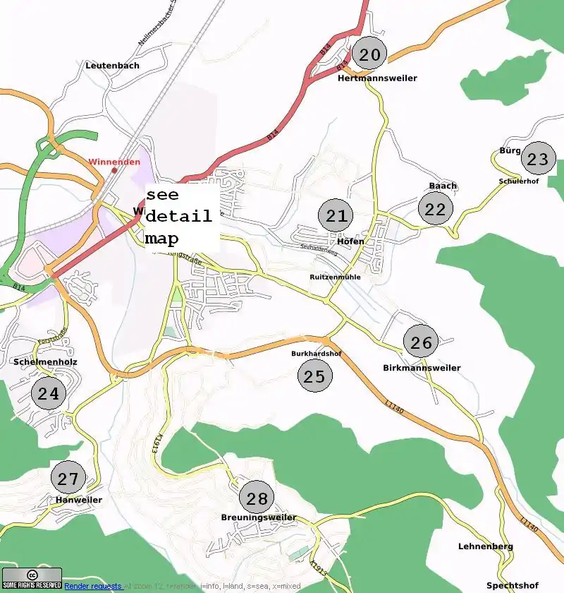 | Zur Karte von Winnenden 48°52′40.80″ N, 9°23′46.32″ E |