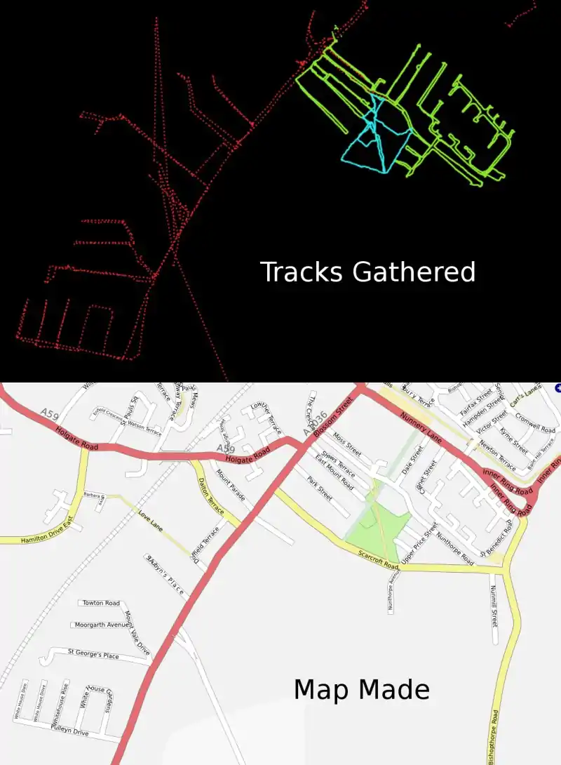 As expect, there were only a few of us - three with 2 GPS devices between us. After some chatting in the pub we set off. Liam and Al took the GPS devices to map areas by foot. Matthew cycled off to get names for streets identified as nameless by the no-names map, after walking with Liam a little to provide some sort of tutorial babble.