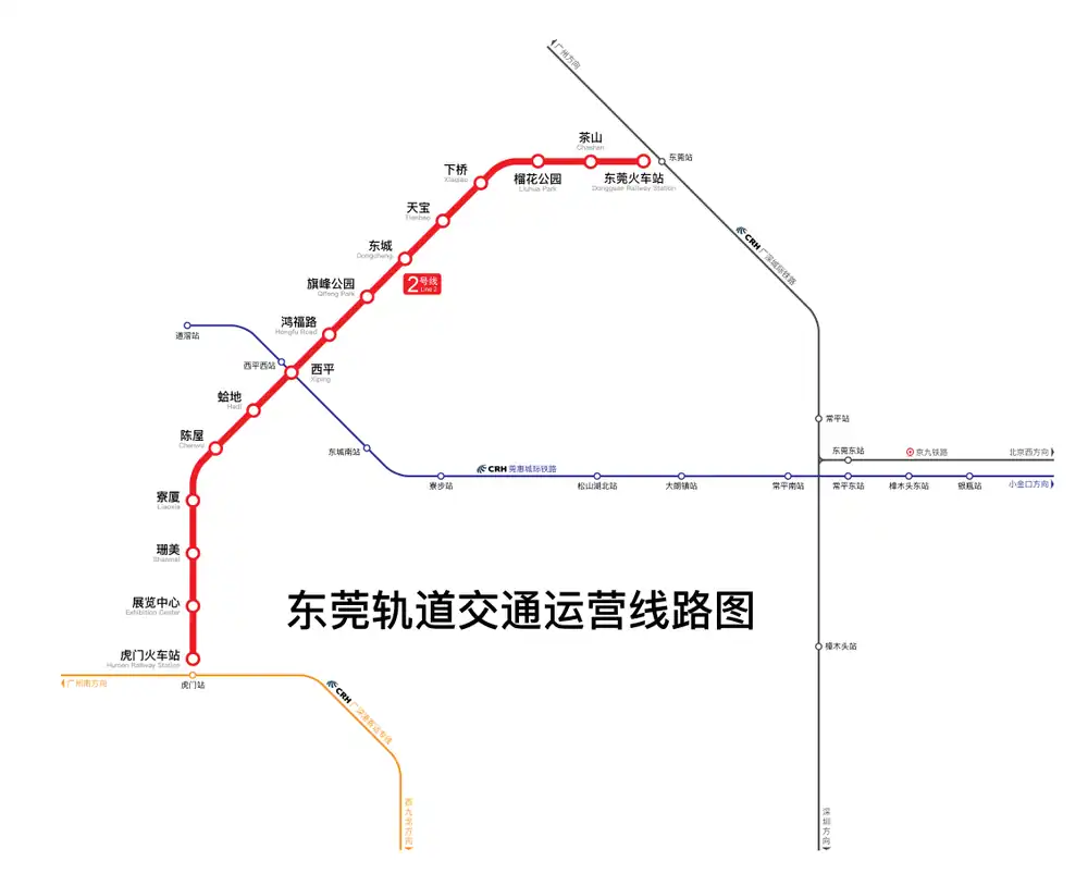 | 2号线 | 2016 | 东莞火车站 | 虎门火车站 | 15 | 37.8 | 13176938 |
