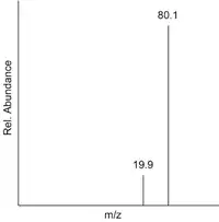 This can be calculated from the mass spectrum of a sample by multiplying each peak's m/z value by its relative abundance. This sum is then divided by the total relative abundance. This is shown below for the mass spectrum of boron, in which the two peaks represent and respectively.