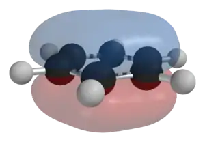 Arenes, such as benzene (above), have regions of high electron density above and below their benzene rings. Delocalised electrons from orbitals occupying these regions attract cationic or partially positively charged electrophiles.