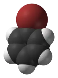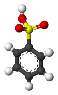 A ball-and-stick model of benzenesulfonic acid, the product of the sulfonation of benzene