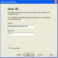 - WAP@CINGULARGPRS.COM (must be all uppercase)