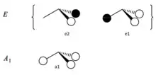 From the table above and character table, the irreducible representation found (a1 and e) is taken and the SALCs of the respective ligands are derived: