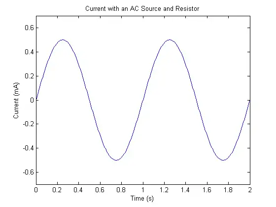 In this circuit, the current again travels in the direction of the arrow. However, every half second, the current switches sign. This can be interpreted as the current reversing direction. This is an example of alternating current.