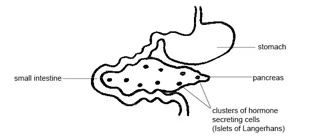• The pancreas that lies in the first bend of the small intestine produces insulin that regulates blood glucose levels.