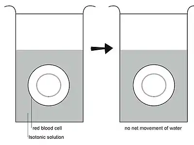 A solution that contains 0.9% salt has the same concentration as body fluids and the solution within red cells. Cells placed in such a solution would neither swell nor shrink (see diagram 3.9). This solution is called an isotonic solution. This strength of salt solution is often called normal saline and is used when replacing an animal’s body fluids or when cells like red blood cells have to be suspended in fluid.