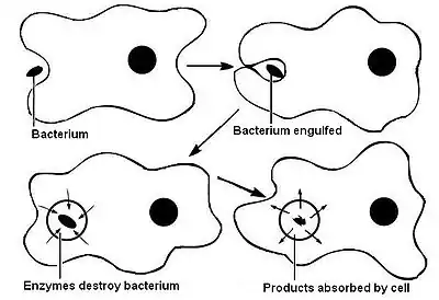 The destruction of bacteria and other foreign substance by white blood cells by the process of phagocytosis is a vital part of the defense mechanisms of the body.