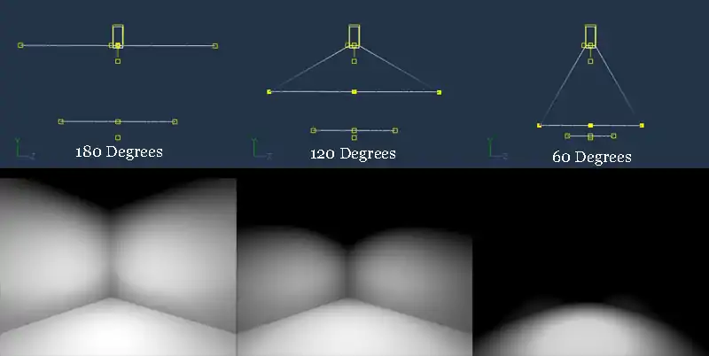 The Cone Angle is a value that is applicable only to a Kleig Light. This value sets the angle at which light is emitted from the Light.