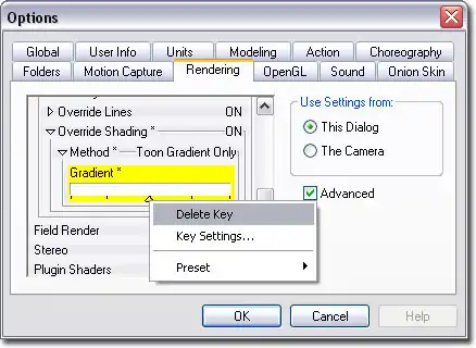 Now that the gradient is cleared, new points can be added without being changed by prexisting points. To add a point, left click anywhere on the Gradient bar. The points you add will be set to the default value which is based on the percent the key point is at and creates a grey scale gradient. To look at the properties of the key point, first left click on the key point, then right click on the key point, and select Key Settings.