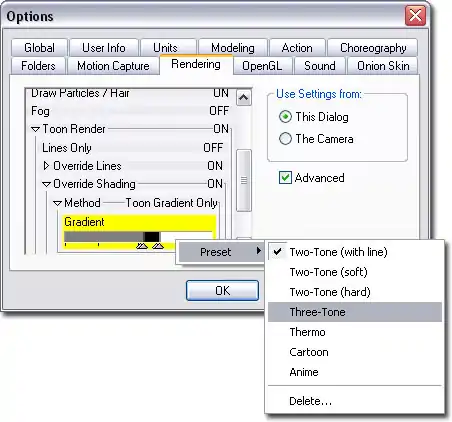 Gradients control how shading is rendered in certin Shading Methods. Animation Master comes with five preset gradients. To select a preset gradient, right click on the gradient bar in the Method menu, and select Preset.