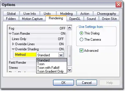 There are four different Methods for Override Shading: Standard, Toon, Toon with Fallof, and Toon Gradient Only.