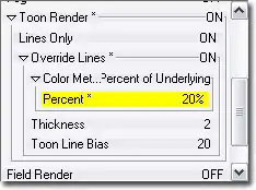 There are three different settings for Override Lines: Color Method, Thickness, and Toon Line Bais.