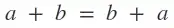For any numbers, a and b, a plus b is equal to b plus a. From this we know that addition is commutative, meaning that the operation of addition can be performed in any order with the same result.