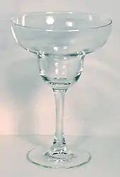 - Most formally a cocktail glass is used, as the classic margarita is a classic drink. Alternatively one may use an old-fashioned glass, particularly if serving on the rocks, or serve in a specialized margarita glass, particularly when serving with a blended fruit margarita.