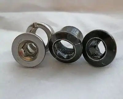 • Chain Ring Bolts. These fasten the chain rings together, and fix the assembly to the spider of the crank. They exist in different lengths depending on their purpose, and can be made of steel or softer alloys.