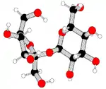 The molecular structure of α-lactose, as determined by X-ray crystallography.