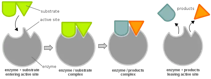 Figure 2: An enzyme catalyzes the reaction of one substrate and forms two products.