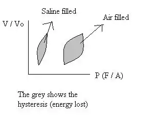 - With lungs we use compliance curves = ∆V / V0 versus F / A