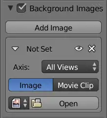 Check the box at the top. Click the “Add Image” button once, and this will add one entry to the list of background images, as at right. Initially there is no image opened in this entry; you will need to click the “Open” button and select an image file.
