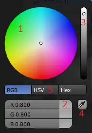 - A color wheel to change the color as you want. In HSV mode, H corresponds to angle around this wheel, while S corresponds to distance from the centre.