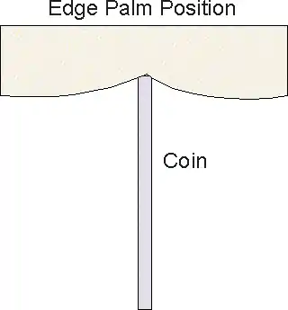A technique often referred to as "edge palming" can be achieved by holding a coin on its edge. There are also two areas between the bends that can hold coins in standard palm position. Palming is an art of hiding necessary items without the knowledge of others it can be used in most sleight of hand. Want to try? First, place a coin in the center of your palm and try to hold in by shrinking your fingers. Avoid folding your fingers at first, as doing so would make it obvious that you are holding something in your hand.