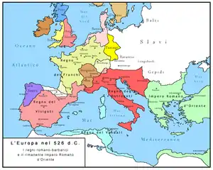 The fall of the Western Roman Empire was in 476, when non-Roman Odoacer deposed Romulus Augustulus and became King of Italy (476–493). Later on, Italy became part of the Ostrogothic Kingdom (493–553), before Italy fell to the Byzantine Empire.