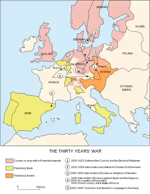 The Cold War (1945–1991) was a period of simmering tension between the the USA with its allies (the Western Bloc), and the Soviet Union and its satellite states (the Eastern Bloc), after World War II. There were sporadic wars in various theaters which did not directly involve the major powers, but instead were wars by proxy. Eventually it would end with the Revolutions of 1989, and the collapse of the Soviet Union (1991).