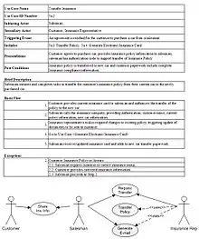 “As a <salesman>, I want <to automatically receive a new insurance card> [so that <the customer can legally drive their new car off the lot>]”.