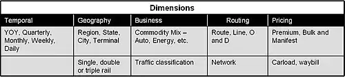 The other activity is to identify the dimensions that will be used to analyze the facts. For instance, commodity mix is an important dimension. Does the rate per pound of cargo differ based on the commodity mix? What is the average rate? Is it worth targeting a specific customer in order to increase cargo from inthat commodity mix?