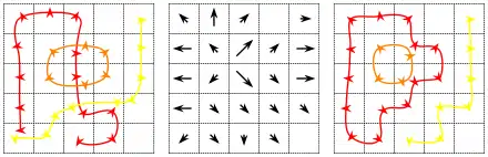 Given a simple path that starts at point and ends at point , the total displacement generated by is . This displacement is solely dependent on the endpoints as indicated by the top image to the right.