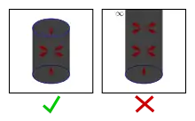 ![]() This image demonstrates that the total surface vector of a surface that is a closed ribbon is 0. The top image shows a surface that is a closed ribbon where the width of the ribbon is constant, the width is always parallel to the vertical dimension, and the edge is always perpendicular to the vertical dimension. The surface is sub-divided into tiny rectangular portions, the surface vectors of which are shown. The lower-left image shows the same surface from a top down perspective. In the lower-right image, the surface vectors are all rotated 90 degrees counter-clockwise around the vertical dimension and clearly sum to 0. |