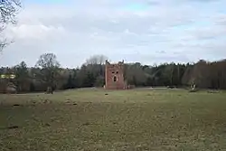Doddington Castle, sometimes known as Delves Hall, is a fortified structure in Doddington Park to the north of Doddington Hall, Cheshire. The fortified tower was built by Sir John Delves in 1364 on the site of a former moated manor house. The tower was initially free-standing and was probably intended as a place of refuge for the family. In the 17th century it was incorporated into a range of domestic buildings which were known as Doddington Hall. In the Civil War the hall became a garrison for the parliamentary forces. It was taken for the king by John Byron, 1st Baron Byron in January 1644 but retaken shortly after. The house was demolished around 1777 and replaced by the new Doddington Hall, leaving the tower as a landscape feature which was possibly used as a gazebo or a banqueting pavilion.