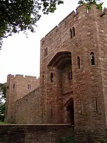 Peckforton Castle from the courtyard showing the hall and the round tower