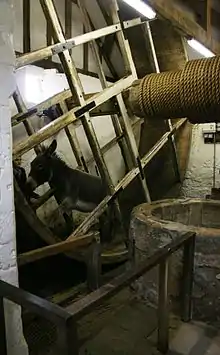 When the well was particularly deep, lifting sufficient water for the castle population would have been a back-breaking task. To mitigate this, donkey wheels were sometimes installed to provide power for the lifting mechanism.