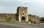 Nunney Castle Quadrangular castle 1373 Ruins Towers originally had conical roofs, north wall collapsed 1910.