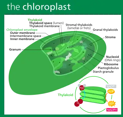 Chloroplasts are major organelles. They contain green pigments that make plants green. They are often called plastids, though plastids and chloroplasts are not exactly the same thing—a chloroplast is a special kind of plastid that photosynthesizes. Chloroplasts do lots of things, but their main function is photosynthesis.
