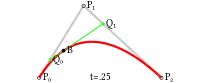 A more interesting Bézier curve is a quadratic Bézier curve for from 0 to 1 between two points and but influenced by a third point in the middle. The definition is: