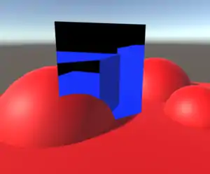 This step has to be performed after the rest of the opaque scene is rendered such that the portal is only rasterized into those pixels where it is actually visible. We make sure that the portal is rendered after the opaque scene by using this line in the shader for the portal:
