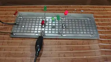 It was working as we expected - the three red LEDs were lighting when we put a positive input voltage, the other two LEDs were extinguished. Everything was OK, as we wanted to be. User:PavlinPanev 64