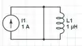 The initial current is 1 amp at t=0+. This means that: