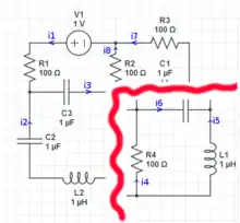 Cut set that results in an equation different than a tradional node: i1-i3-i4-i5=0