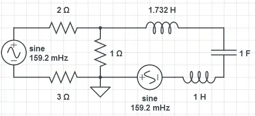 The magnitudes match. The voltage through the source peaks before the current because the first source sees the inductor.