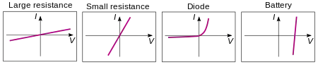 Ideally, resistance does not change due to voltage or current and are thus straight lines.