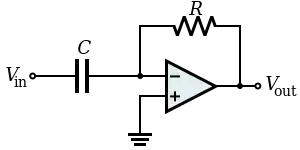 - It is usually assumed that the input has zero DC component (i.e., has a zero average value). Otherwise, unless the capacitor is periodically discharged, the output will drift outside of the operational amplifier's operating range.