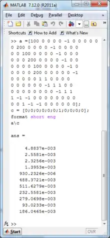 - Create two matrices, one square and the other a column with the numbers that are on the right of the equal sign